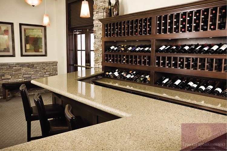Кварцевый камень — это композитный материал, который содержит от 93 до 96% природного кварца и 4-7% высококачественной полиэфирной смолы. Одно из основных достоинств кварцевого камня — его уникальная твердость по шкале Мооса (она составляет 7 баллов, выше этот показатель у алмаза, корунда). На сегодняшний день кварцевый камень широко применяется при изготовлении предметов интерьера, в том числе столешниц в ванную комнату и на кухню. Выбирая, из чего сделать столешницу, необходимо, прежде всего, обращать особое внимание на эксплуатационные характеристики материала, которые с легкостью справятся с высокой влажностью, высокими температурами, жиром. Кварцевый агломерат отвечает всем требованиям современного покупателя. В отличие от натурального камня, агломерат устойчив к влаге, механическим повреждениям, высоким температурам, устойчив к воздействию натуральных красителей, не трескается. Нельзя не отметить внешнюю привлекательность предметов интерьера из кварцевого агломерата. При специальной обработке, специалисты изготавливают идеально ровные края изделий, благодаря чему швы соединения разных элементов практически незаметны. Характеристики: толщина изделий 10 мм, 20 мм, 30 мм прочность при изгибе 575 кг/кв.см (56,4 МПа) истираемость 0,08-0,09 г/куб.мм влагопоглощение 0,02 г/час термостойкость до 280 С твердость 7 баллов