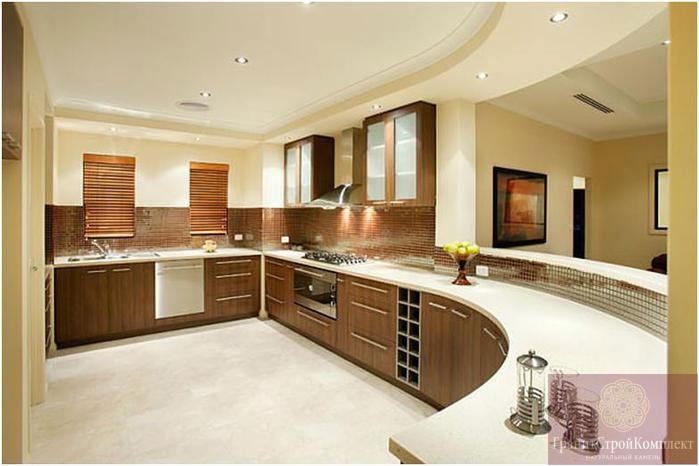 Кварцевый камень — это композитный материал, который содержит от 93 до 96% природного кварца и 4-7% высококачественной полиэфирной смолы. Одно из основных достоинств кварцевого камня — его уникальная твердость по шкале Мооса (она составляет 7 баллов, выше этот показатель у алмаза, корунда). На сегодняшний день кварцевый камень широко применяется при изготовлении предметов интерьера, в том числе столешниц в ванную комнату и на кухню. Выбирая, из чего сделать столешницу, необходимо, прежде всего, обращать особое внимание на эксплуатационные характеристики материала, которые с легкостью справятся с высокой влажностью, высокими температурами, жиром. Кварцевый агломерат отвечает всем требованиям современного покупателя. В отличие от натурального камня, агломерат устойчив к влаге, механическим повреждениям, высоким температурам, устойчив к воздействию натуральных красителей, не трескается. Нельзя не отметить внешнюю привлекательность предметов интерьера из кварцевого агломерата. При специальной обработке, специалисты изготавливают идеально ровные края изделий, благодаря чему швы соединения разных элементов практически незаметны. Характеристики: толщина изделий 10 мм, 20 мм, 30 мм прочность при изгибе 575 кг/кв.см (56,4 МПа) истираемость 0,08-0,09 г/куб.мм влагопоглощение 0,02 г/час термостойкость до 280 С твердость 7 баллов