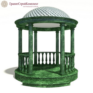 Ротонда из натурального камня 3, мрамор Змеевик высота — 3.53 м. диаметр 3.86 м,Ступень каменная 1630×680×30мм — 6 шт (с эффектом «мокрый камень») ( цена указана за комплектующие из камня , крыша изготавливается за дополнительную стоимость)