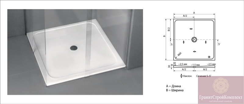 Гранит и Мрамор, салон натурального камня / Каталог / Сантехника / Душевые кабины модель FLOW искусственный камень