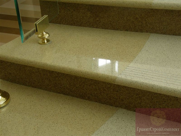 Ступени и лестничные марши из кварцевого камня эстетичны, долговечны, устойчивы к повреждениям, сколам и царапинам. Это позволяет устанавливать как внутри помещения, так и снаружи зданий, кварцевый агломерат морозостойкий и устойчивы к натуральным красителям. Широкий выбор цветовых решений позволит изготовить ступени, которые отлично впишутся в интерьер. Для обеспечения безопасности возможно нанесение специального средства для противоскольжения на поверхность ступеней. Характеристики: толщина изделий 10 мм, 20 мм, 30 мм прочность при изгибе 575 кг/кв.см (56,4 МПа) истираемость 0,08-0,09 г/куб.мм влагопоглощение 0,02 г/час термостойкость до 280 С твердость 7 баллов