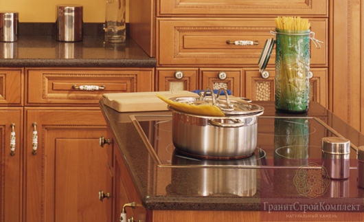 Содержит сущность текстуры и дизайна натурального камня. Stone открывает по новому красоту природы. Уход за кварцевой поверхностью SILESTONEОБЩИЕ РЕКОМЕНДАЦИИКварцевая поверхность Silestone является абсолютно непористой и, следовательно, обладает высокой устойчивостью к повседневным бытовым загрязнениям. Для регулярной чистки поверхностей Silestone рекомендуется использовать специальное средство Q-Action от Сosentino с кристаллами кварца. Если нет Q-Action, можно использовать воду и мягкое мыло.ОЧИСТКАНиже приведены некоторые меры, с помощью которых можно провести очистку от пятен, появляющихся со временем:ЖИРНЫЕ ПЯТНАНанесите средство Q-Action на пятно и оставьте на 2 минуты. Затем протрите мягкой губкой, пока оно не исчезнет. Немедленно промойте водой и высушите. Если нет средства Q-Action то можно использовать CIF Original Cream.ИЗВЕСТКОВЫЙ НАЛЕТНанесите любое средство от известкового налета (например Viakal или аналогичный) на поверхность и оставьте на 1 минуту. Промойте большим количеством воды и высушите. Следуйте инструкциям, которые рекомендованные производителем.ЧИСТКА ПОВЕРХНОСТЕЙ В ТЕКСТУРАХ LEATHER И VOLCANOДля регулярной чистки поверхностей с неполированными текстурами, Cosentino рекомендует использовать Q-Action или воду с мягким мылом. Для удаления стойких пятен используйте неабразивные губки. Текстура VOLCANO шероховатая и следовательно, более восприимчива к загрязнениям, поэтому требует более частого ухода.УДАРОПРОЧНОСТЬОдним из преимуществ кварцевых поверхностей является их высокая устойчивость к ударам. Однако необходимо предохранять от ударов определенные точки на кварцевой поверхности которые по дизайну изготовления могут быть несколько слабее (углы, тонкие кромки и т. д.).ВОЗДЕЙСТВИЕ ТЕПЛАТакже преимуществом кварцевых поверхностей является их высокая устойчивость к высоким температурам. Но не следует ставить на кварцевую поверхность посуду снятую с горячей плиты. Используйте теплоизолирующие подставки. Тепловой шок, вызванный разницей температур (холодное / горячее) может привести к повреждению поверхности.РЕКОМЕНДОВАННЫЕ МЕРЫ ПРЕДОСТОРОЖНОСТИ:• Не используйте SILESTONE на улице или там где поверхность подвержена воздействию прямых УФ лучей.• Не помещайте никаких предметов недавно снятых с горячей плиты на поверхность, без применения теплоизолирующей подставки.• Не используйте водоотталкивающие средства, герметики, полироли и т.д.• Не полируйте.• Не используйте растворитель для красок, едкий натрий, или продукты с рН более чем 10. Если используются отбеливатели или растворители, он должны быть разбавлены водой и никогда не должны оставаться в постоянном контакте с продуктом. Избегайте всех продуктов, содержащих хлор и любой контакт с фтористоводородной кислотой.• Не используйте обезжиривающие вещества.• Не пользуйтесь металлическими мочалками.• Использование такого рода средств может привести к потере гарантии на кварцевую поверхность.• Примеры продуктов, которые не должны применяться на кварцевой поверхности Silestone: растворители для красок, щетки или металлические мочалки, средства для чистки духовок, чистящие средства с содержанием метилен хлорида, кислоты для чистки стоков, жидкость для снятия лака с ацетоном, и т.д.• Если какой-либо из этих продуктов попадет на поверхность, необходим